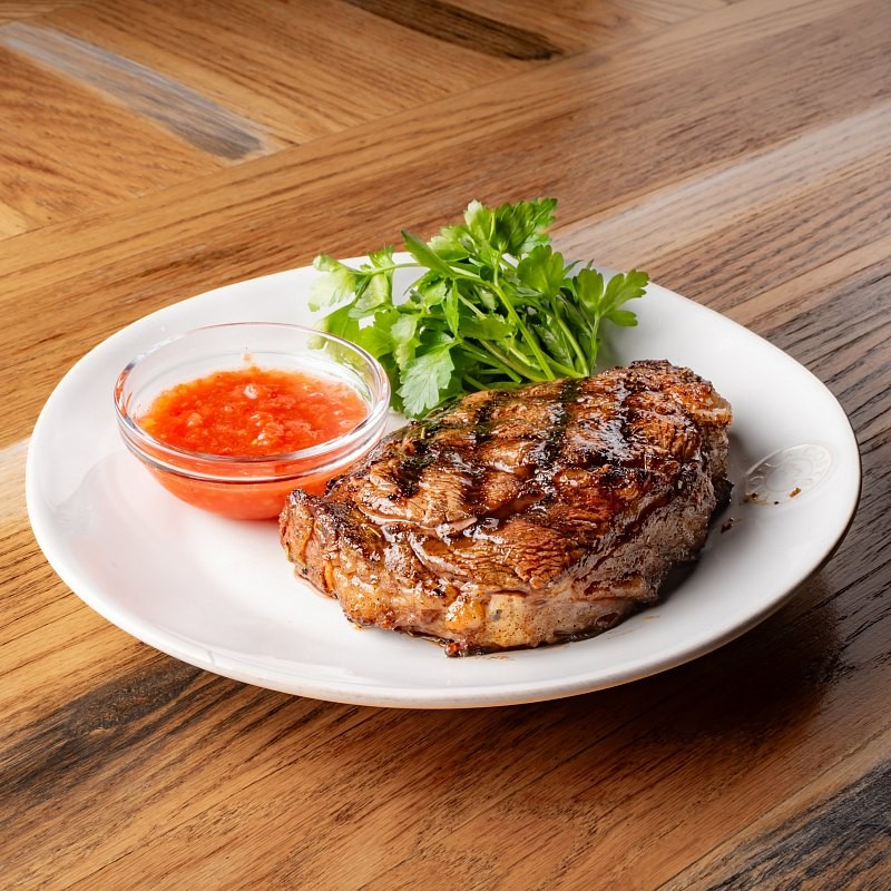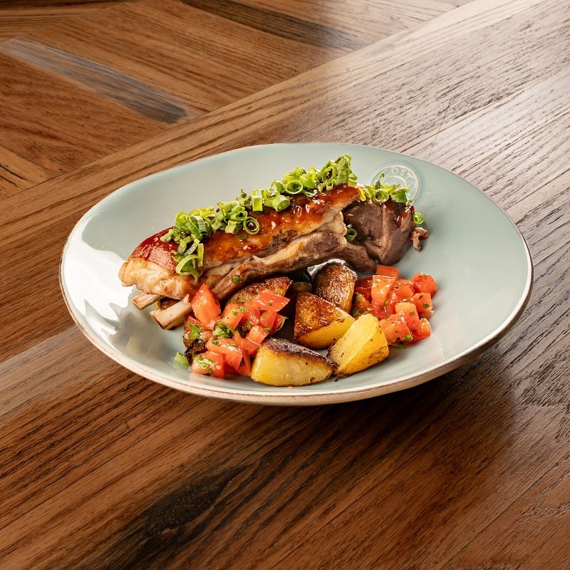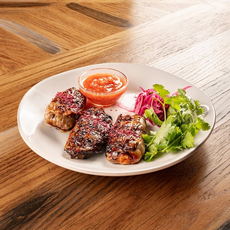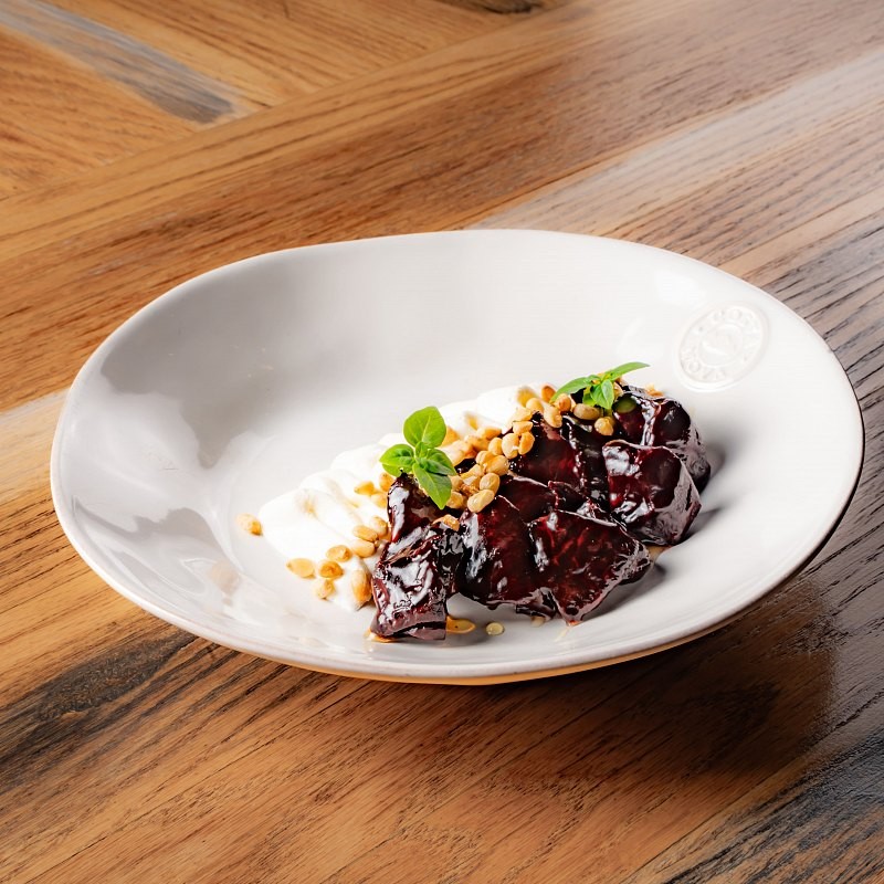 Обжаренный на гриле язык с соусом барбекю и кинзой