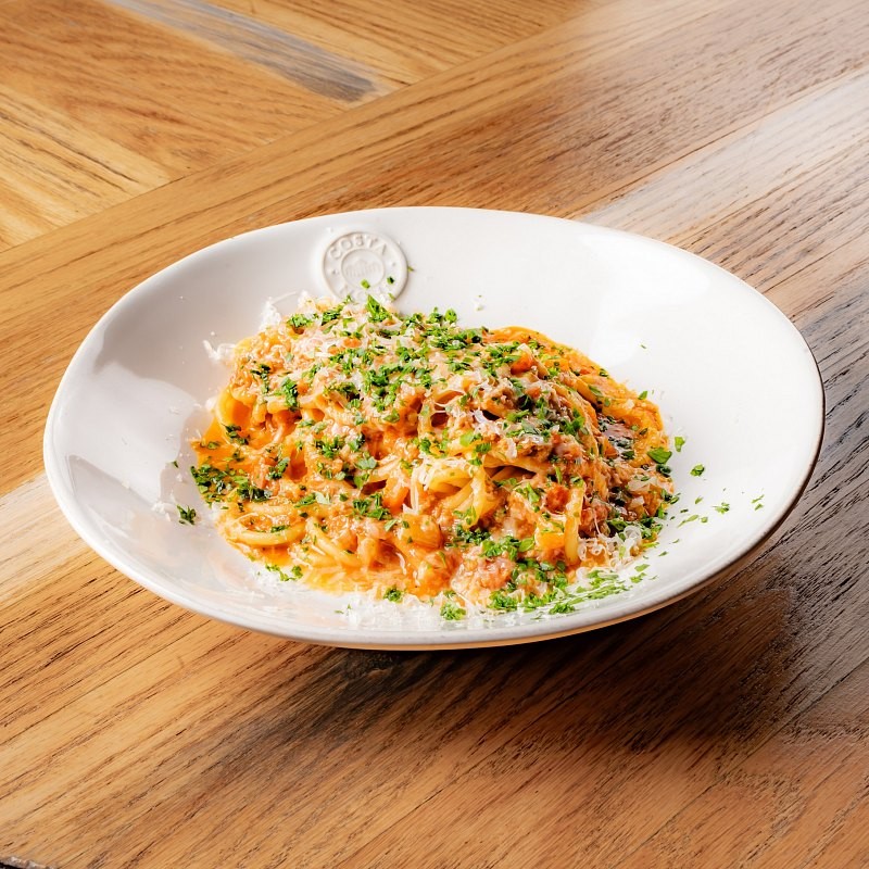 Домашняя паста с соусом из рубленой говядины, специй и сыра Пармезан
