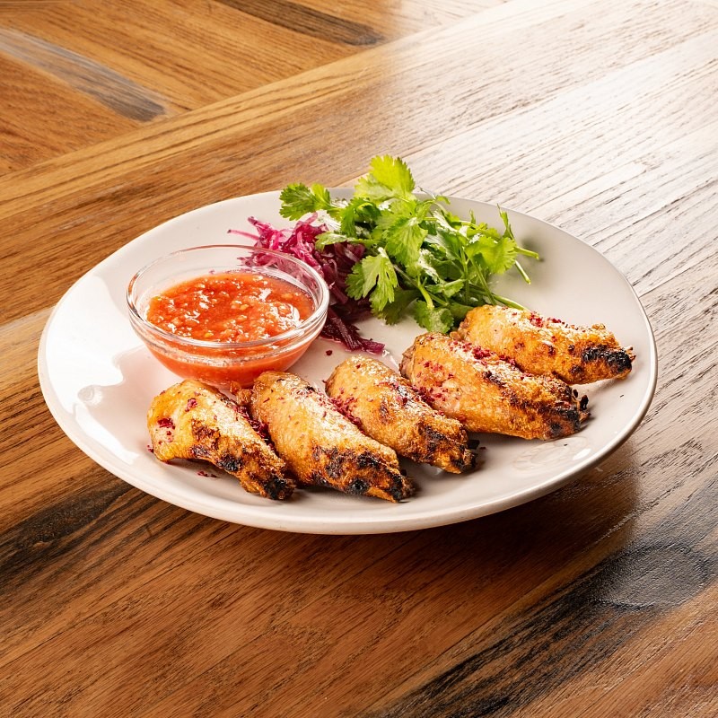 Пицца из дровяной печи с обжаренной на углях курицей, домашней Моцареллой, кинзой и красным луком