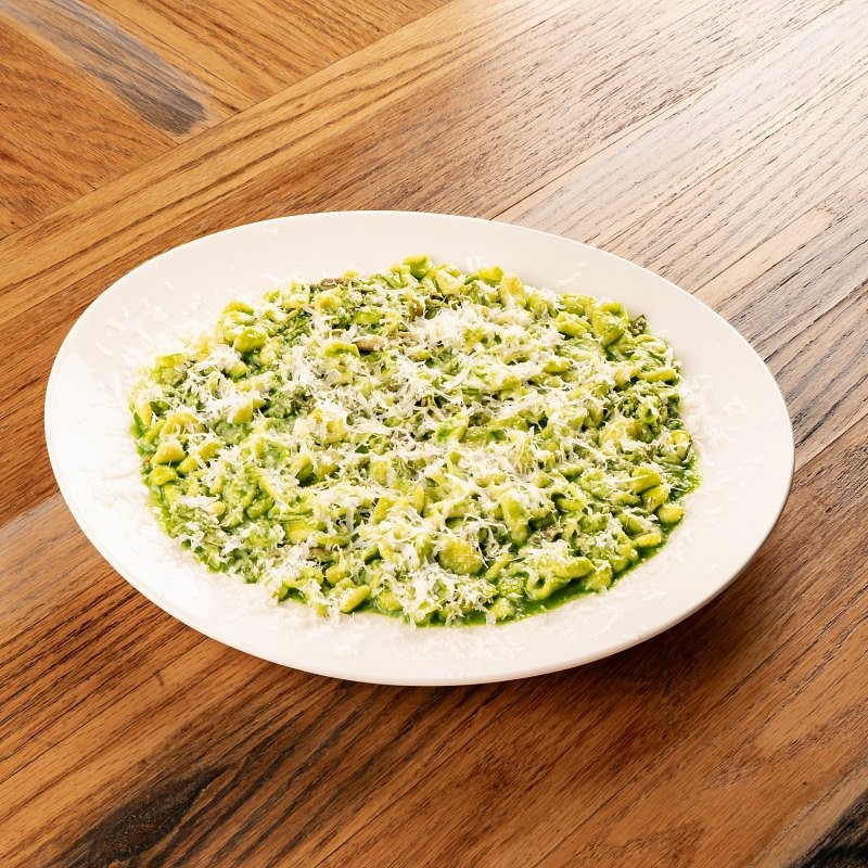 Пицца с домашней Страчателлой, Моцареллой, рукколой и оливковым маслом
