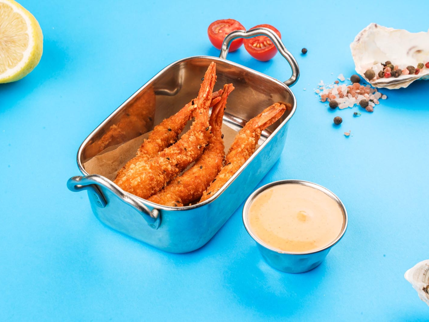 Креветки тигровы в панировке, соус спайси.
