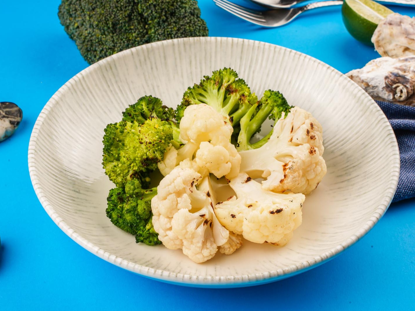 морепродукты и овощи, запеченные на мангале, тост из белого хлеба, соус том-ям, сливочный соус 800гр