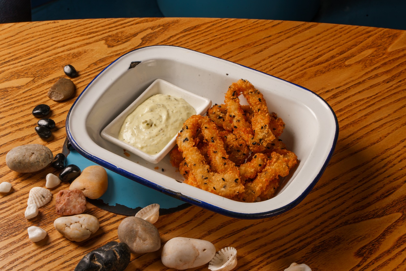 Кольца кальмара в панировке, соус тар-тар.