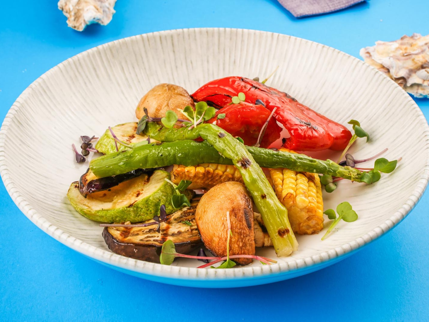 Шампиньоны, спаржа, помидор, кабачки, баклажан, кукуруза, болгарский перец 150гр