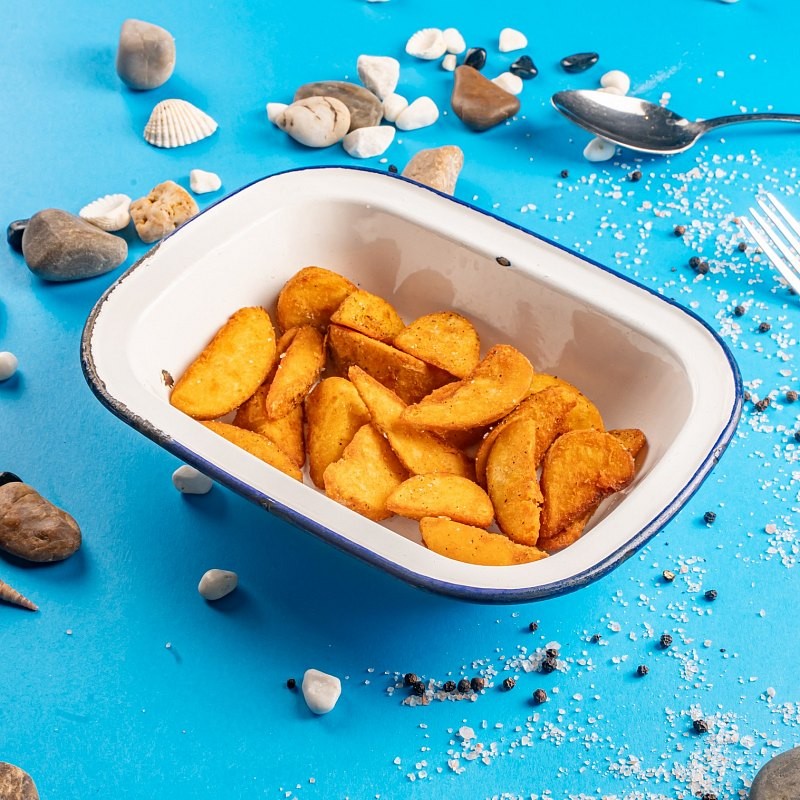 Картофельные ломтики, обжаренные во фритюре со специями.