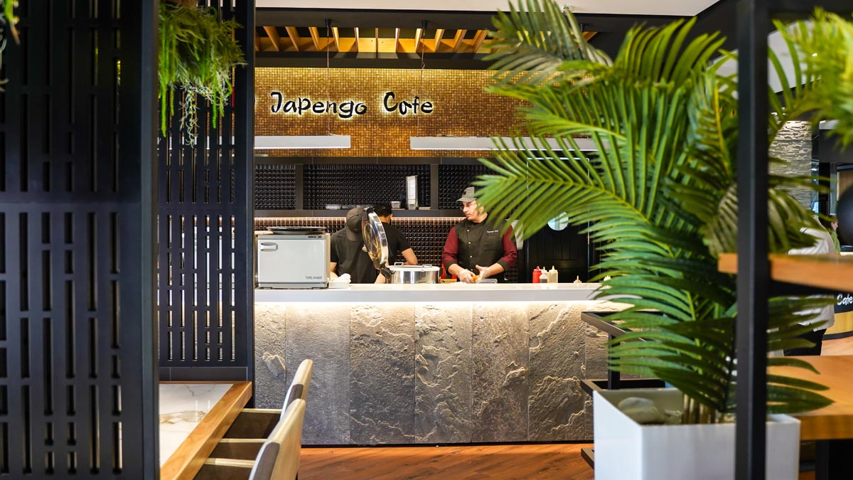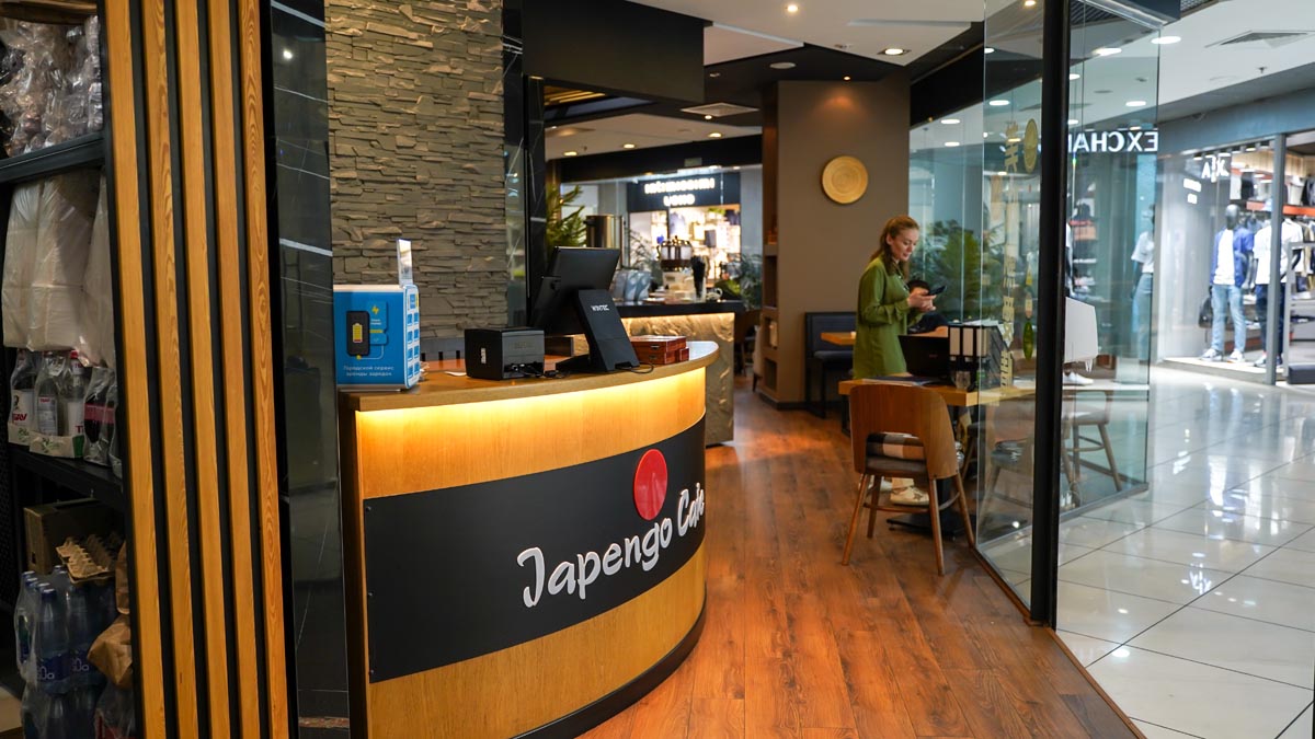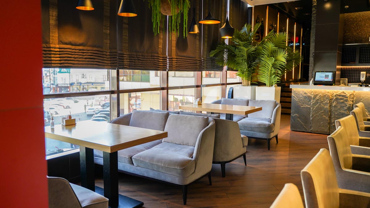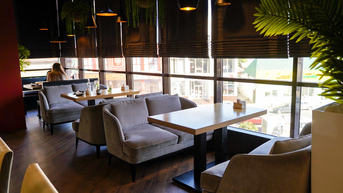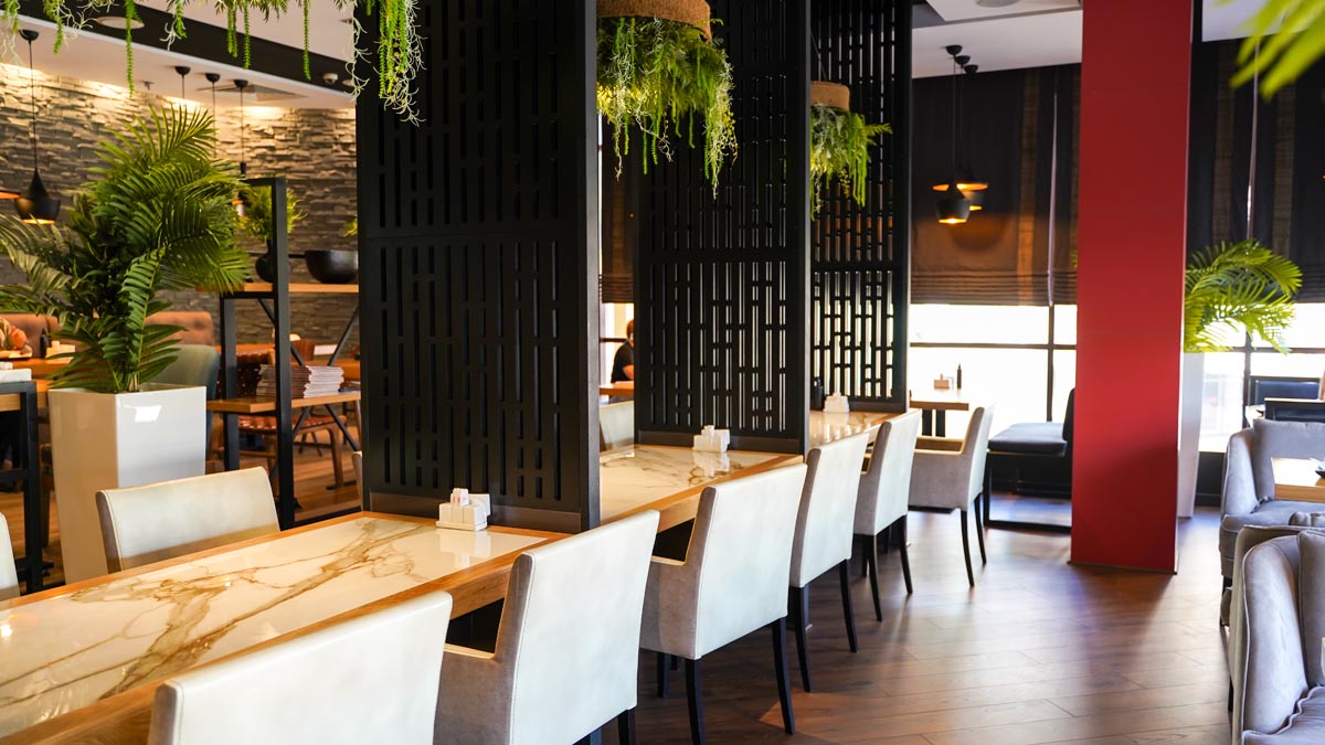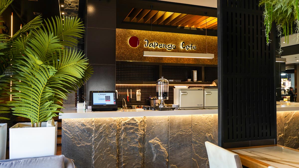 Это современный ресторан со стильным интерьером и японской кухней.